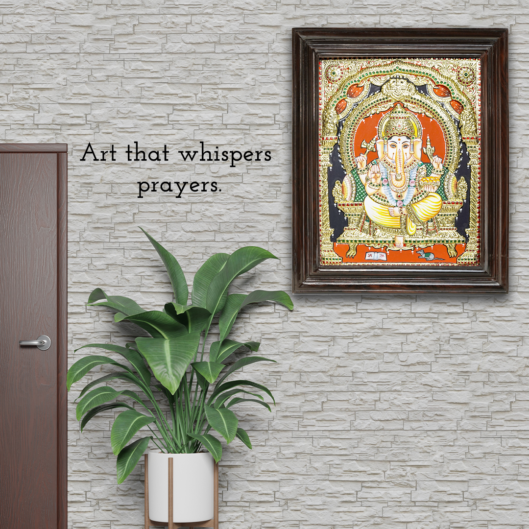 Tanjore paintings are a classic art form treasured for their cultural significance. People around the world use these traditional paintings to symbolize their wealth, culture, and religious faith. We are working hard to give aesthetic “palagai padam” with high-quality woods, vibrant colours, gold sheets, glass stones..etc. So, the paintings will hold this beauty for a long period and give you a realistic feel with its eye contact and natural feel.