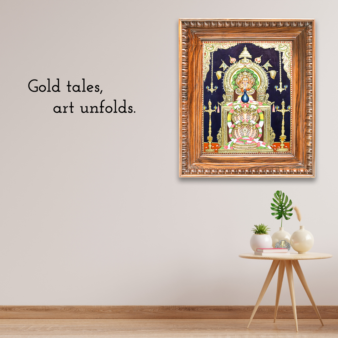 Tanjore paintings are a classic art form treasured for their cultural significance. People around the world use these traditional paintings to symbolize their wealth, culture, and religious faith. We are working hard to give aesthetic “palagai padam” with high-quality woods, vibrant colours, gold sheets, glass stones..etc. So, the paintings will hold this beauty for a long period and give you a realistic feel with its eye contact and natural feel.