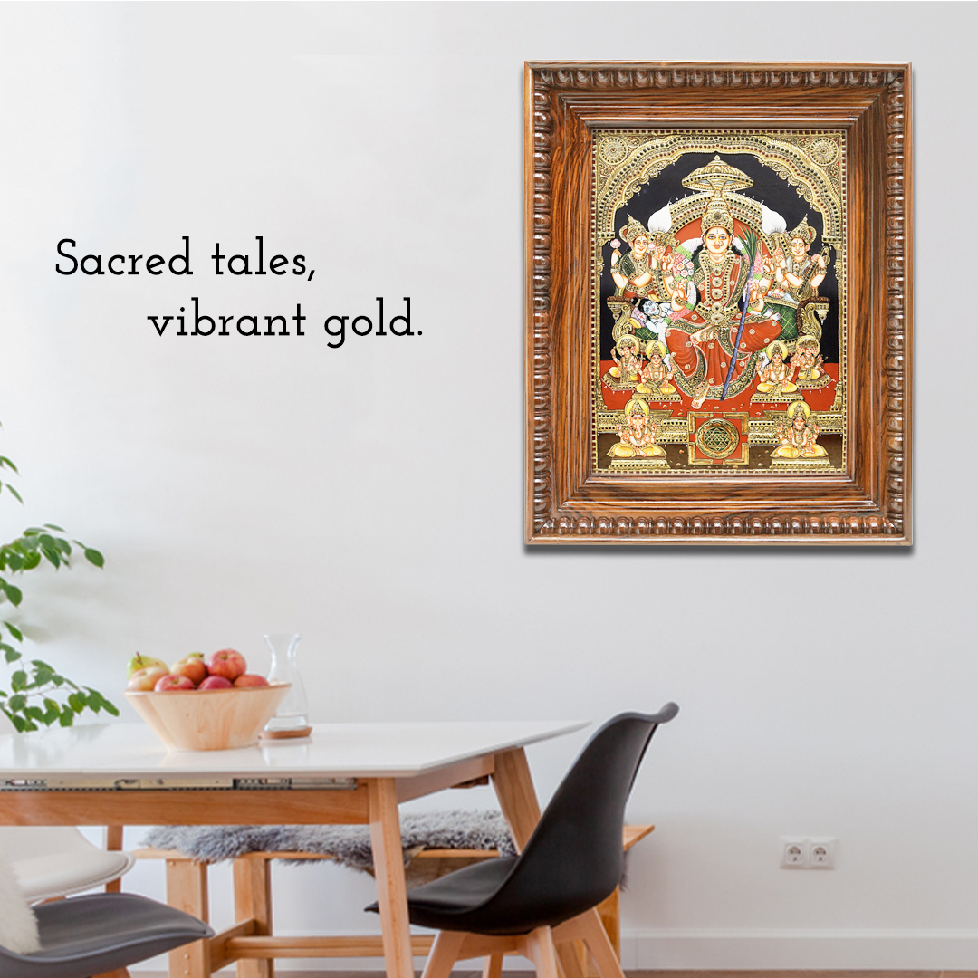 Tanjore paintings are a classic art form treasured for their cultural significance. People around the world use these traditional paintings to symbolize their wealth, culture, and religious faith. We are working hard to give aesthetic “palagai padam” with high-quality woods, vibrant colours, gold sheets, glass stones..etc. So, the paintings will hold this beauty for a long period and give you a realistic feel with its eye contact and natural feel.